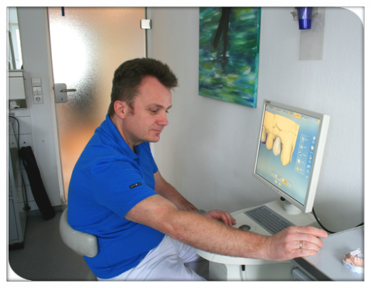 Dabei wird der präparierte Zahn durch eine Hochleistungskamera gescannt. Anschließend wird der Zahnersatz durch das System am Computer individuell designet und durch eine Maschine in Form gefräst.